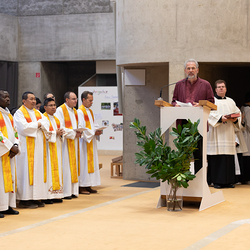 Heilige Messe der Weltkirche-Tagung Encuentro 2023 mit Gästen aus den Partnerdiözesen aus Ecuador, Kenia und den Philippinen durch Weihbischof Scharl.