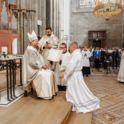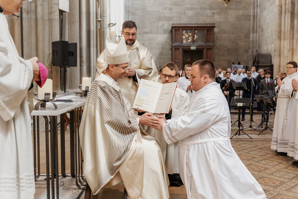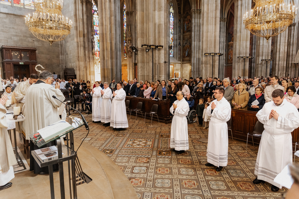 Am Samstag wurden in der Votivkirche in Wien sechs Weihekandidaten zu Diakonen geweiht. Die Weihe spendete Weihbischof Stefan Turnovszky.